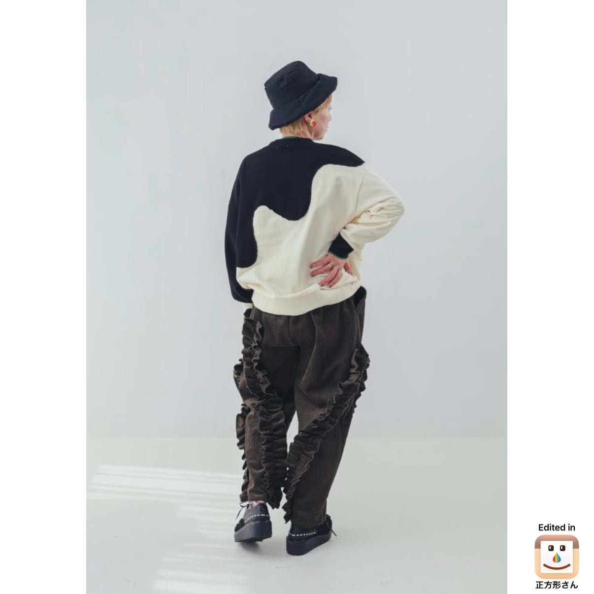 夜の帳(とばり)が次第に降りていくような、とろりとしたウェーブによる色の切り替えが大胆なトレーナーです。