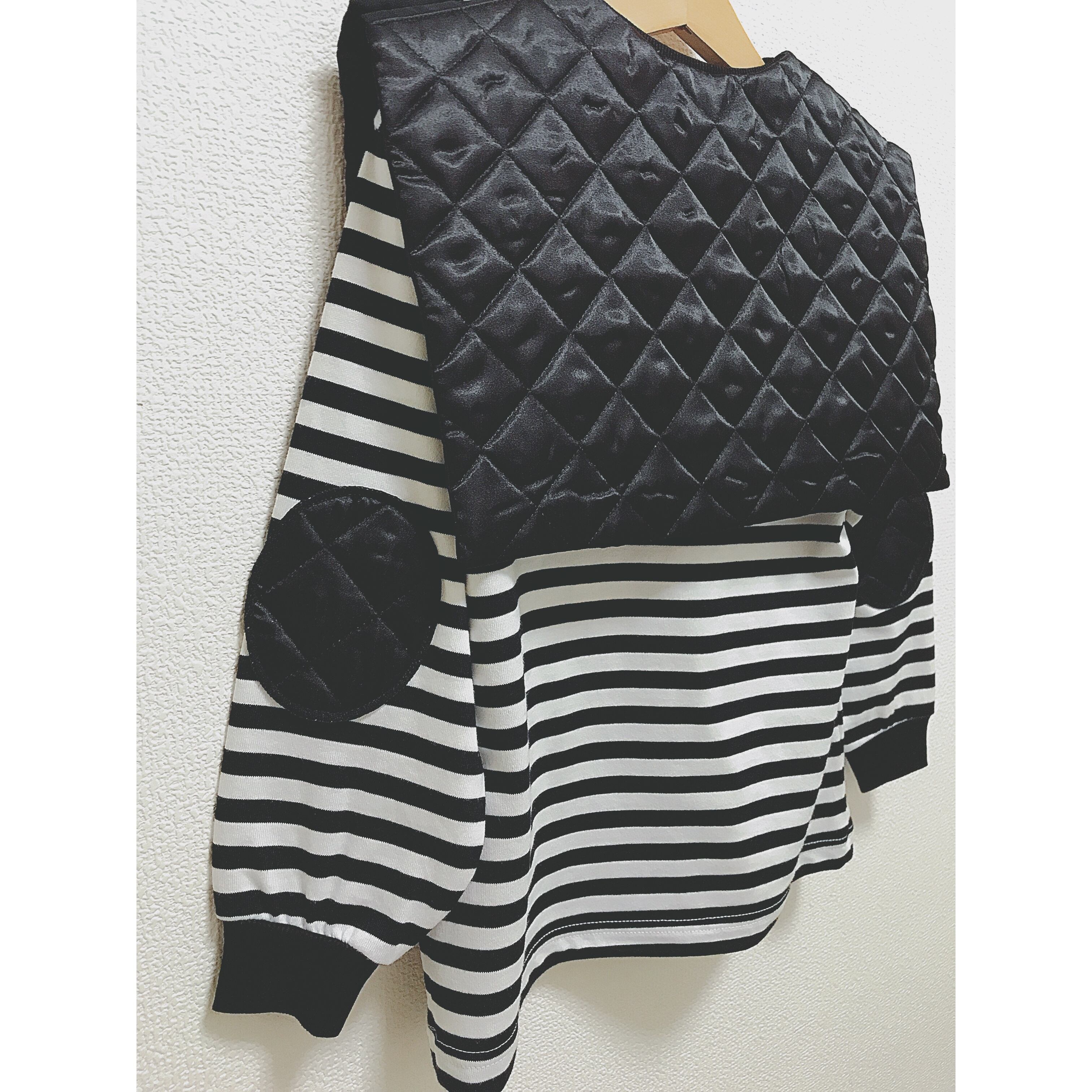 キルティングの肘パッチが付いているロンTEEになります。