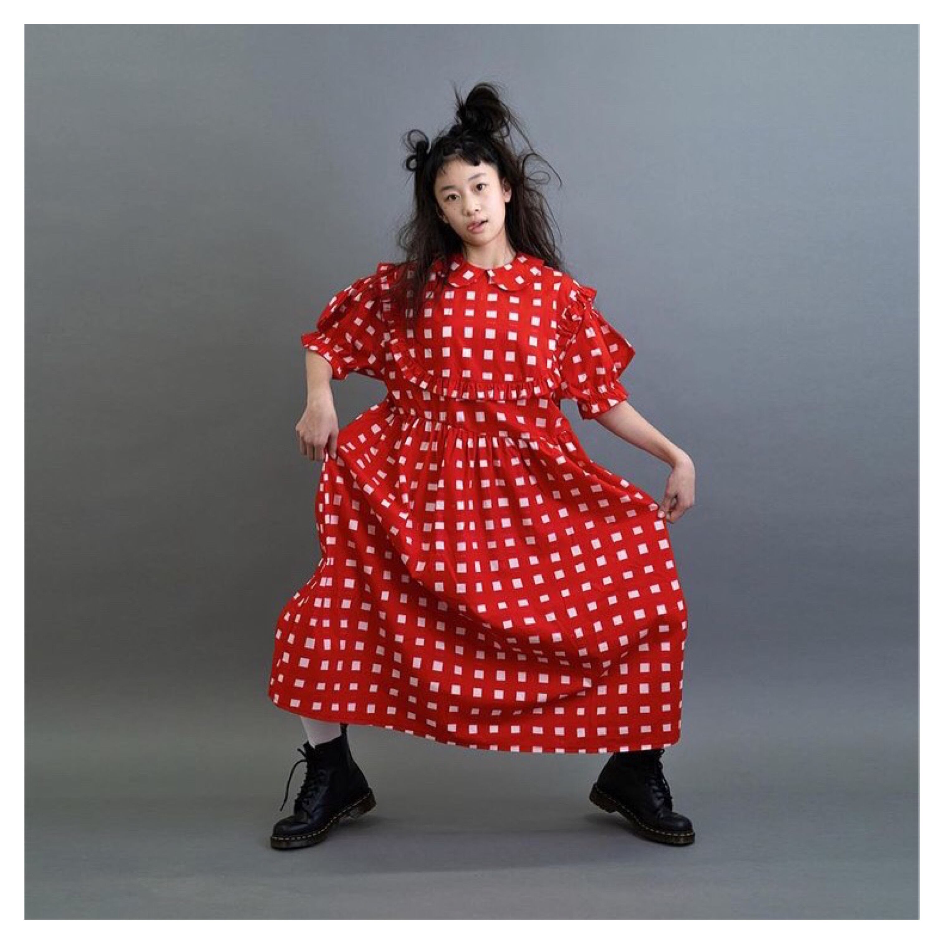 ORIG. CHECK FRILL BIB YOKE DRESS