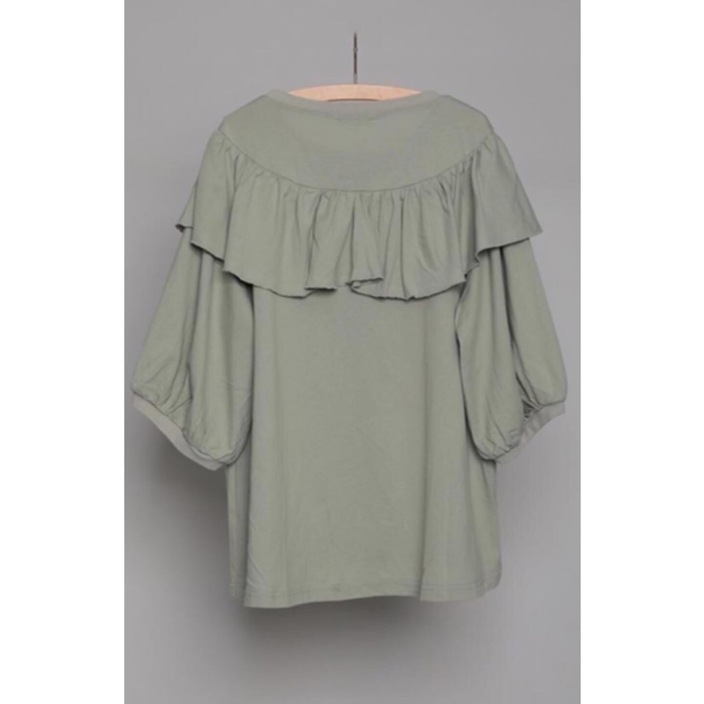 着丈は後ろの方が少し長めで ざっくり出して着るとおしりがほぼ隠れる丈感です。