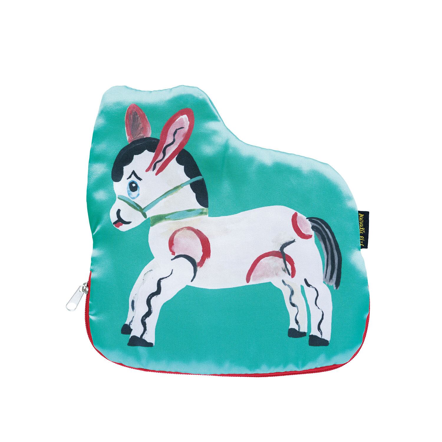 ナタリーレテさんの描くキュートな動物や女の子が目をひくサテン生地のポーチ。