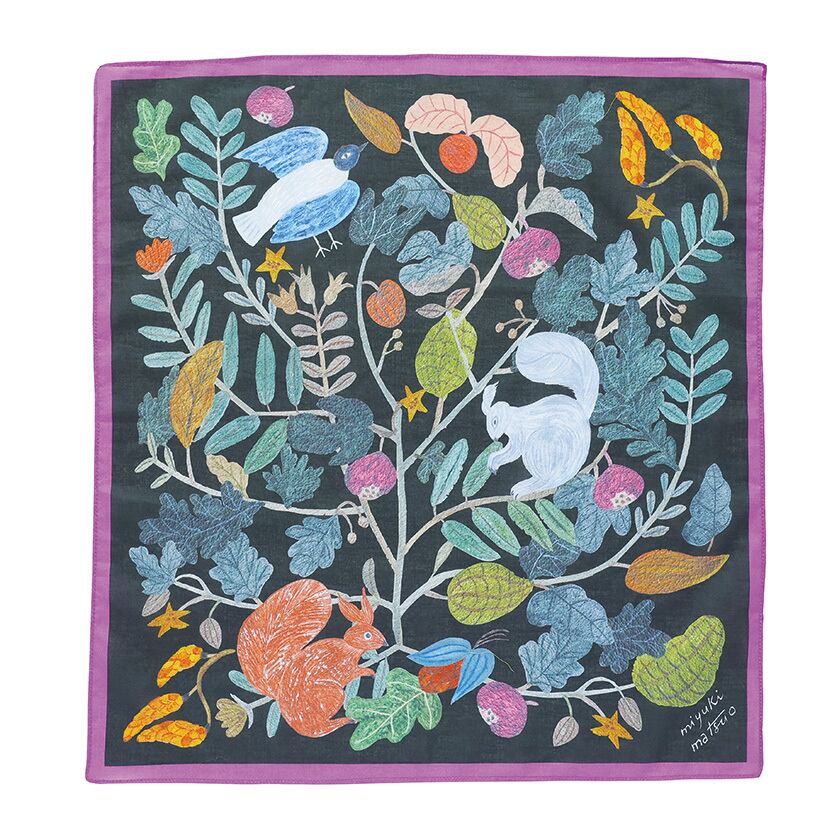松尾ミユキさんのイラストの世界観をハンカチに落とし込みました。